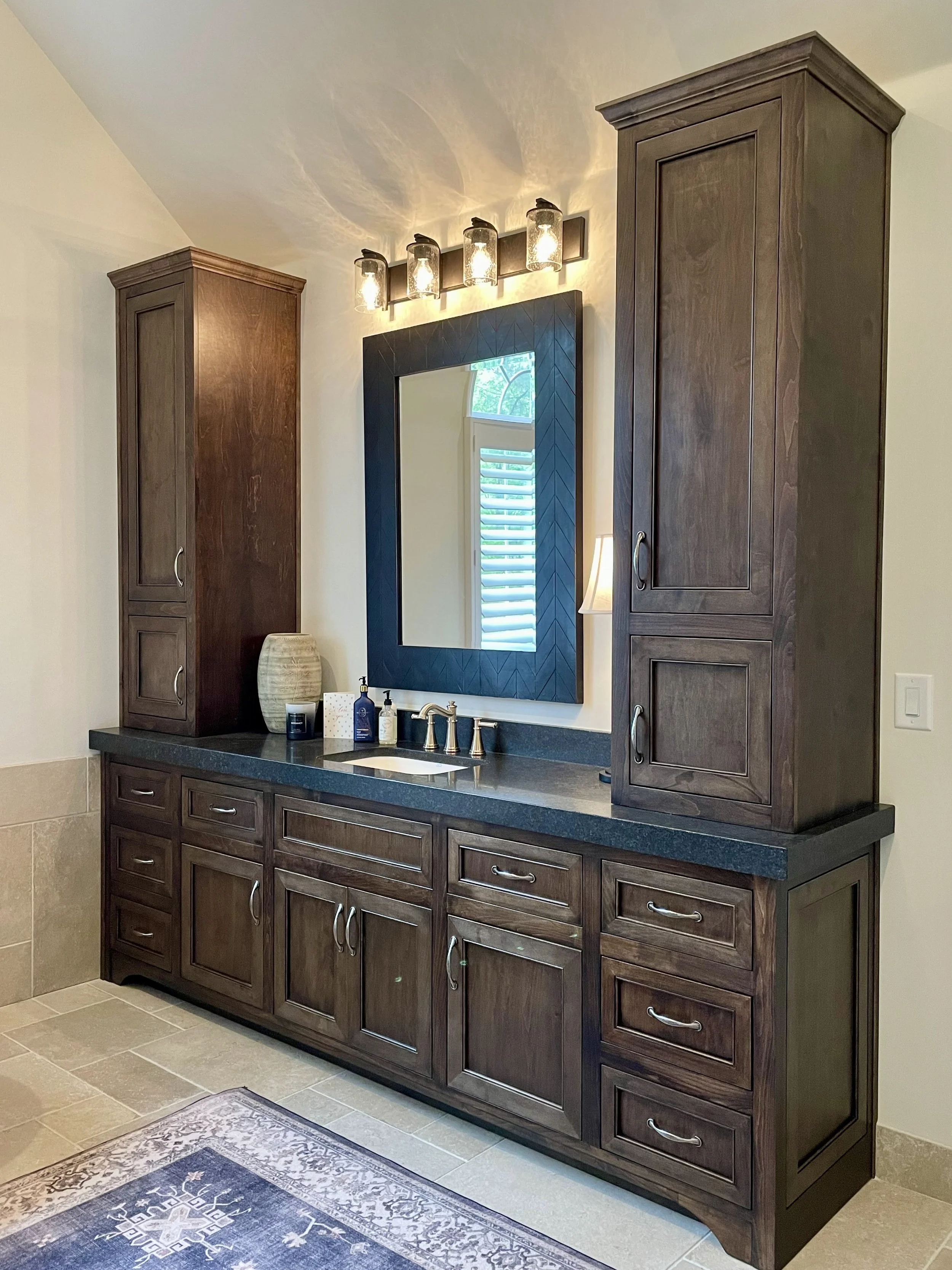 Check out this master bathroom project the team completed with lots of great little details. Give the professionals at Line Creek Cabinetry a call today for your free consultation and design at 770-954-5458.